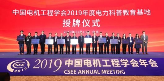 2019年11月13日,2019年中國電機工程學會年會在京開幕。作為能源電力領域的行業(yè)盛會,本次會議深入貫徹十九大清潔綠色能源發(fā)展理念,以“清潔能源,智慧電力,美好生活”為主題,邀請了15位院士及140余位專家現場作交流報告,來自政府、國內外高校及企業(yè)的2000余人參會交流。開幕式上舉辦了2019年度電力科普教育基地授牌儀式,本年度共26家單位入選。天目湖先進儲能技術研究院作為2019年新入選單位代表,獲“2019年度電力科普教育基地”正式授牌。電力科普教育基地認定工作自2013年啟動以來,截至2019年底,全國范圍內共命名電力科普教育基地99家。此次,研究院獲授牌,是學會對研究院在基礎教育、大眾科普等方面工作的肯定,研究院將繼續(xù)發(fā)揮自身優(yōu)勢,主動承擔社會責任,切實履行社會義務,為科學技術知識宣傳普及工作而奮斗。