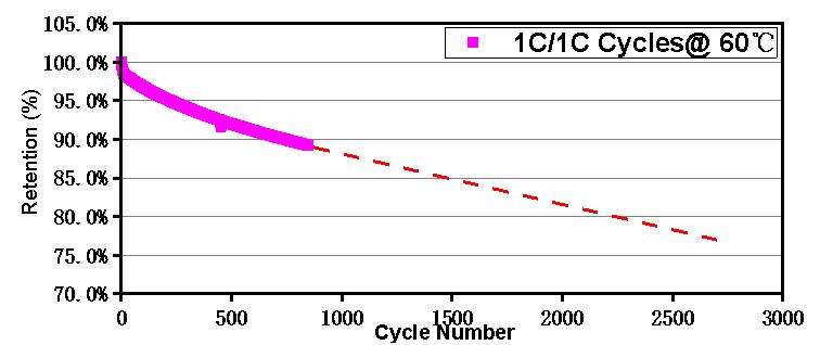 Capacity% vs 0.5C | 103.15% | 100.00% | 98.06% | 96.69% | 97.46% | 95.12% | 91.29% |